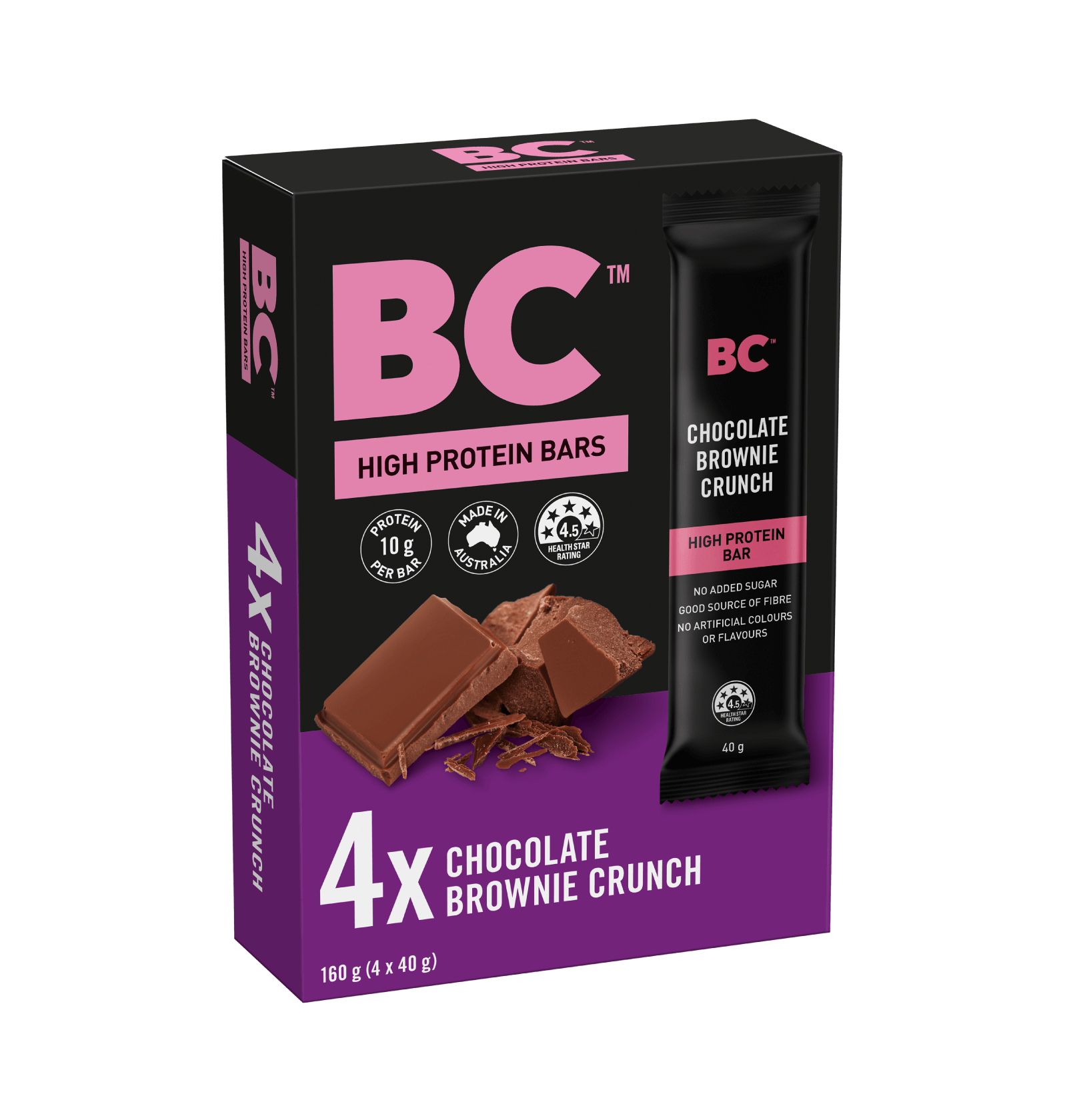 A high protein bar made from premium ingredients enrobed in milk chocolate.